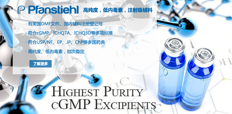 “熱烈祝賀Pfanstiehl的注射級甘氨酸Glycine(G-140)喜獲CDE登記號F20250000403, 這是Pfanstiehl產品獲得的第18個CDE登記號!”甘氨酸在醫藥輔料制劑中應用廣泛,, 可作為緩沖劑,增溶劑,穩定劑等,具有諸多優勢。Pfanstiehl秉承一貫高品質理念,為滿足全球生物制藥行業對于高品質甘氨酸的需求,隆重推出的注射級甘氨酸Glycine (G-140), 具有超高純度,超低內毒素,超低金屬殘留的特點,單獨檢測29種金屬離子,并且新增DNA,RNA,DNA酶,RNA酶和脂肪酶,亞硝酸鹽等多項質量指標的檢測,符合多國藥典規定(USP, EP, BP, JPE, ChP),可用于生物治療性藥物和疫苗的生產。產品信息:· 產品名稱:Glycine, High Purity, Low Endotoxin, Low Metals, USP, EP, BP, JPE, ChP (G-140)· 中文名稱:甘氨酸· 分子式:C2H5NO2· 分子量:75.07 g / mol· CAS號:56-40-6· 產品貨號:G-140產品特點: · 超高純度,超低內毒素,超低微生物含量,超低金屬雜質殘留· 質量指標新增DNA,RNA,DNA酶,RNA酶,脂肪酶和亞硝酸鹽檢測· 符合多國藥典:USP, EP, BP, JPE, ChP· 符合ICH Q3D標準· 符合GMP標準· 已獲DMF和CDE登記號 產品應用:· 緩沖劑· 穩定劑· 增溶劑如果您對Pfanstiehl注射級別Glycine G-140感興趣,歡迎聯系Pfanstiehl 中國區代理商北京西美杰科技有限公司獲得如下詳細的產品概況說明文件和測試樣品。Pfanstiehl Inc.最新產品系列如下,歡迎聯系北京西美杰科技有限公司獲取100g裝免費樣品。北京西美杰科技有限公司為Pfanstiehl中國代理,為客戶提供完善的技術支持與售后服務。歡迎撥打西美杰客服電話400-050-4006或者登陸網站www_xmjsci_com.lds33.com了解更多信息。 更多>